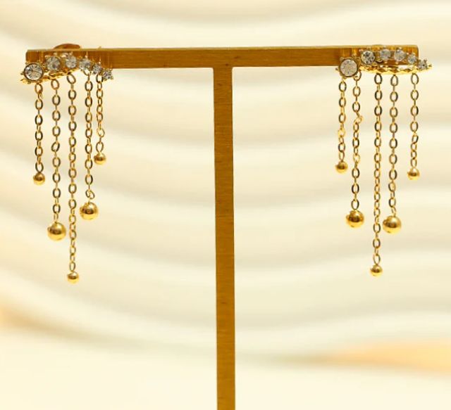 Boucles d’oreilles dorée strass avec chaînes à l’arrière