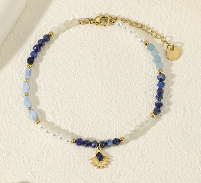 Bracelet Chaîne Dorée Pierre Lapis Lazuli Pendentif Fleur