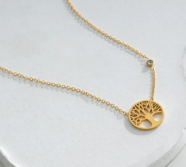 Collier Doré Avec Pendentif Arbre de Vie Et Strass
