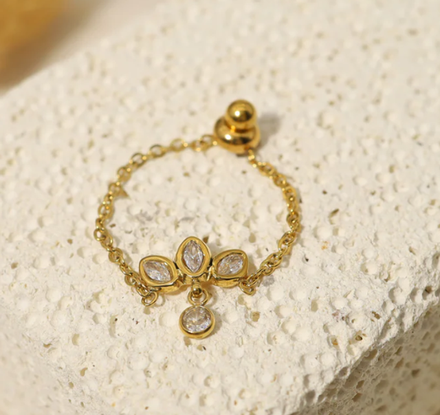 Bague en chaîne dorée avec fleur en strass