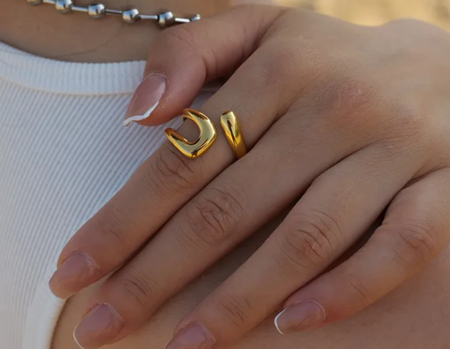 Bague dorée ouverte sur le dessus